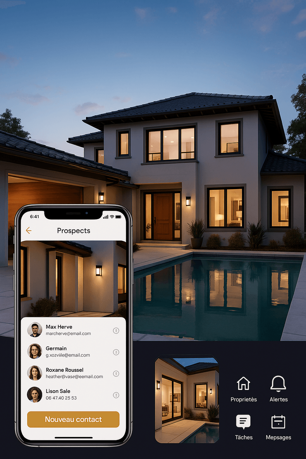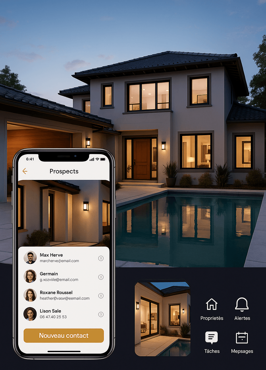 Fiches biens, historiques clients, rappels, tout est calibré pour les agents immo'.