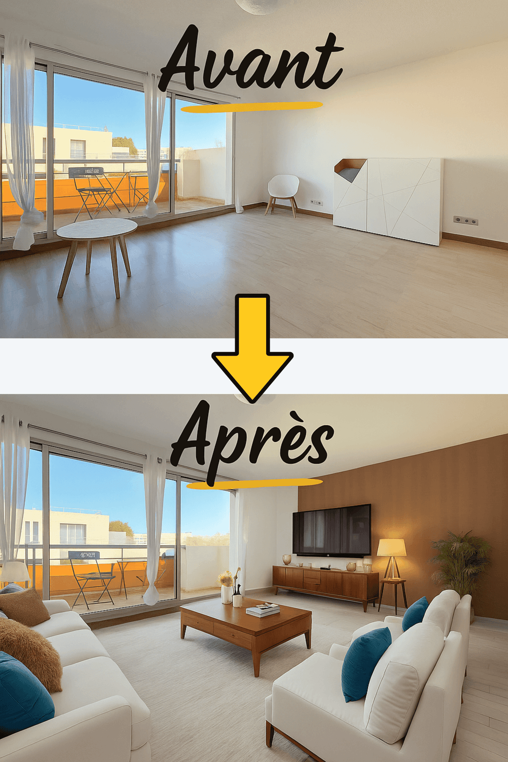 Une photo suffit pour générer un avant/après réaliste et inspirant. Le vendeur se projette, perçoit la valeur que vous apportez. Il sent que vous avez une vraie vision pour son bien, qu’il ne s’agit pas d’une simple mise en vente mais d’un accompagnement réfléchi.